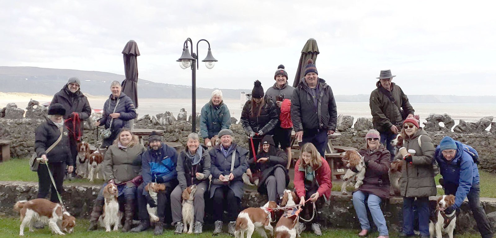 A happy gathering at Oxwich Bay today (Sunday 12th January 2025) with absolutely stunning weather (albeit a bit on the cold side as Martin illustrates with his snazzy headwear) – which made a fantastic change after we had to cancel this walk due to bad weather last week. We had 16 Welshies bring their owners along despite the late change of date and they all rushed about the beach and dived in the water enjoying the unseasonal January sunshine – and after the dogs had had their fun – the humans finished off with a well earned cuppa and slice of cake at the cafe on the beach.